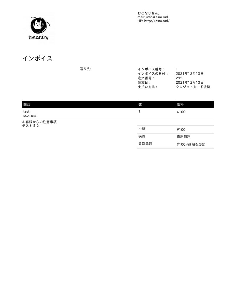 「WooCommerce PDF インボイス」プラグイン用のカスタムテンプレートフォルダ一式です。